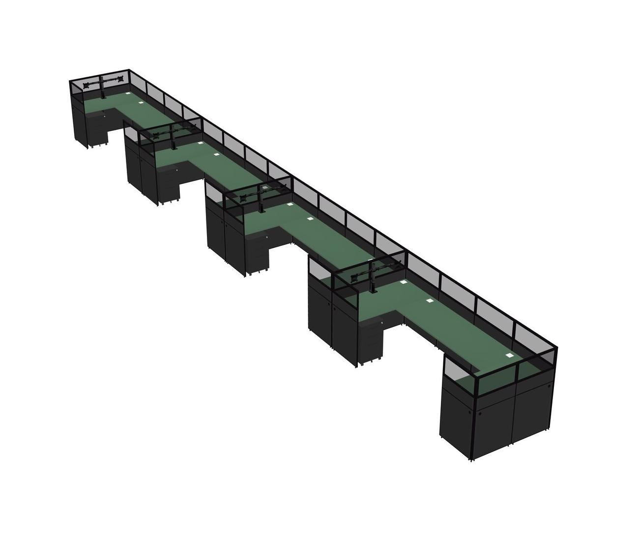 Système De Panneaux En U Vert Pour 4 Personnes + Bras De Moniteur (bras Doubles) + Tiroirs Mobiles En Métal Pour 4 Utilisateur(s)