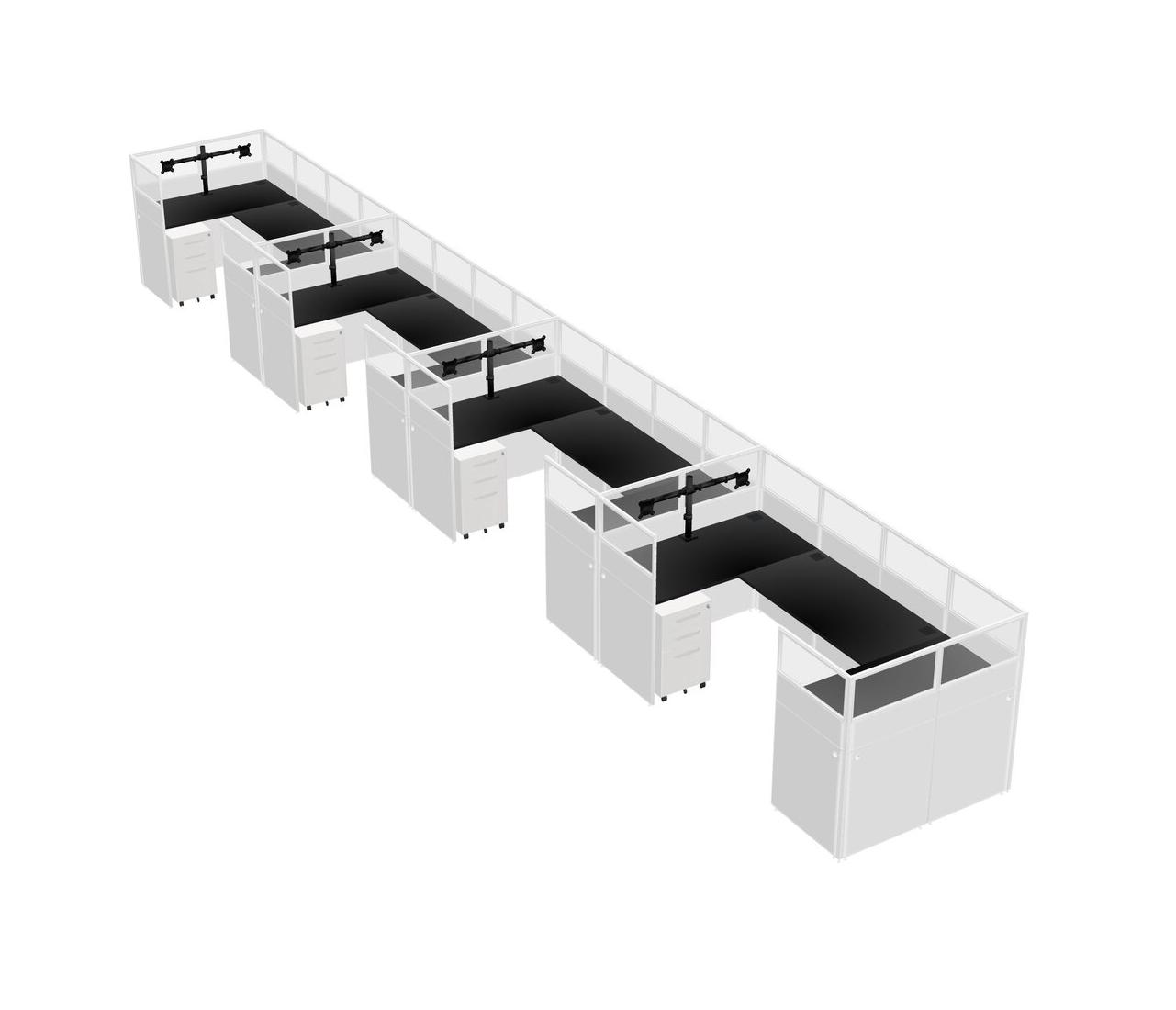 Système De Panneaux En U Noir Pour 4 Personnes + Bras D'écran (bras Doubles) + Tiroirs Mobiles En Métal Pour 4 Utilisateur(s)