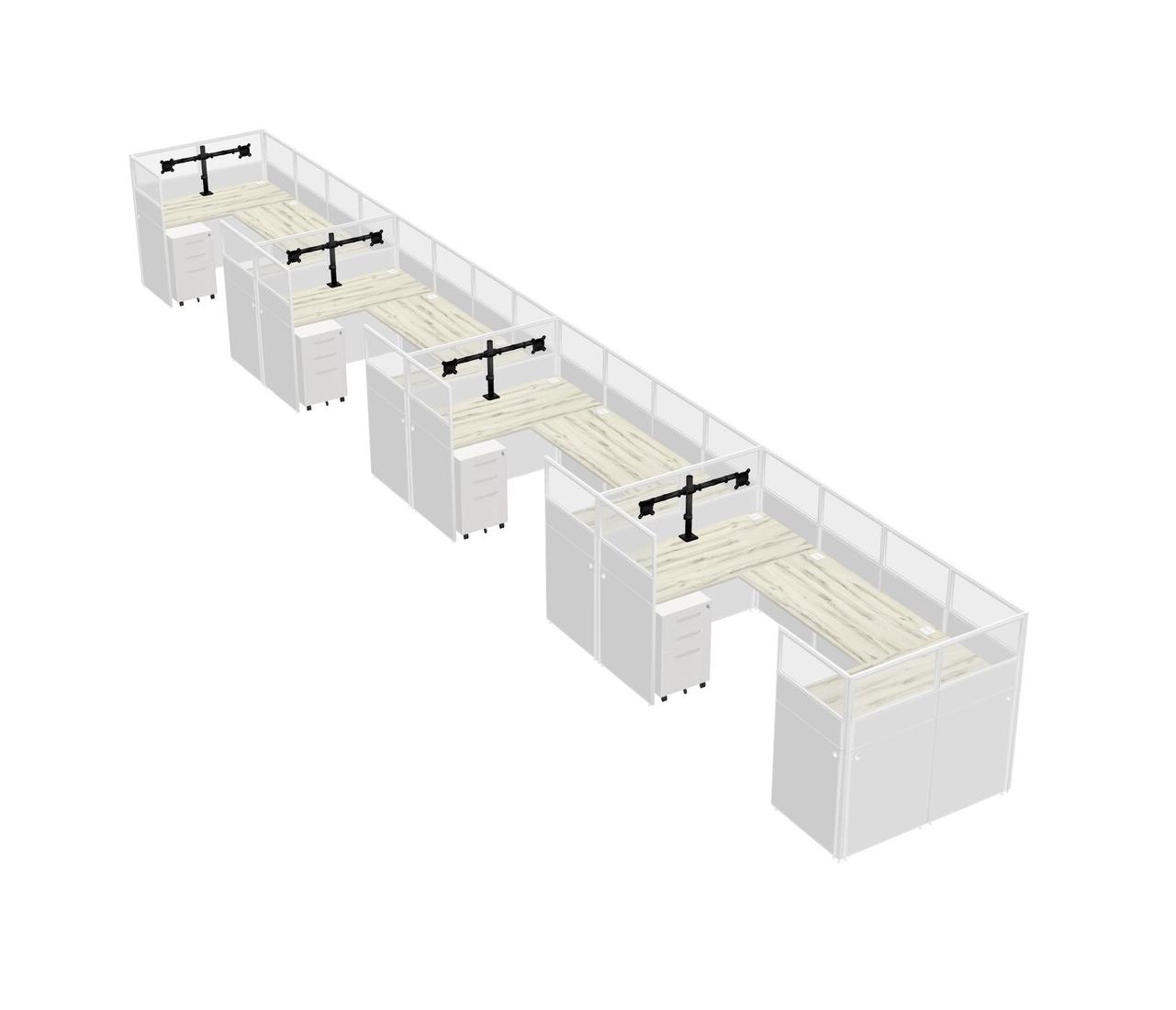 Système De Panneaux En U Heinne Holz Pour 4 Personnes + Bras D'écran (bras Doubles) + Tiroirs Mobiles En Métal Pour 4 Utilisateur(s)