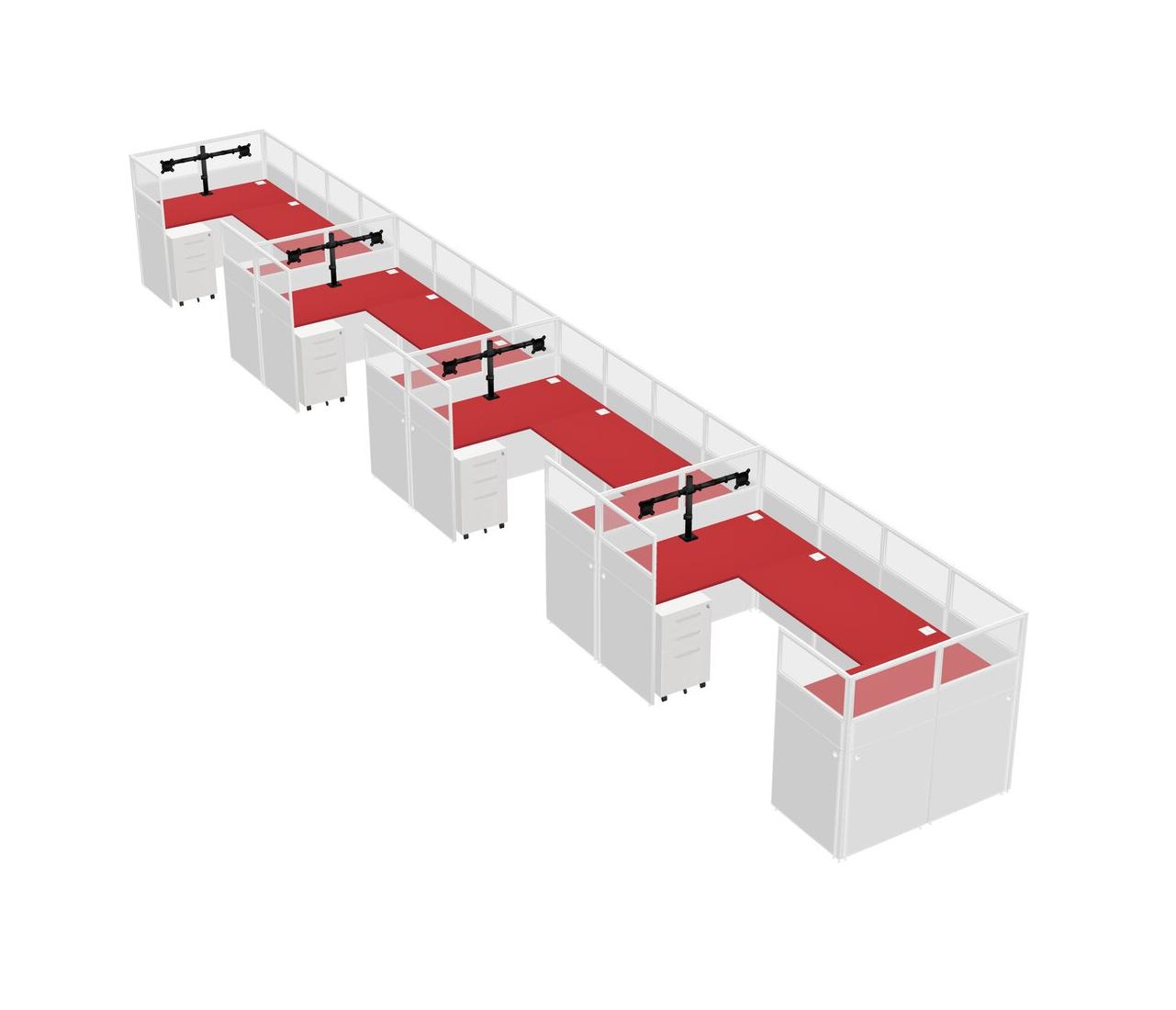 Système De Panneaux En U Prism Red Pour 4 Personnes + Bras D'écran (bras Doubles) + Tiroirs Mobiles En Métal Pour 4 Utilisateur(s)