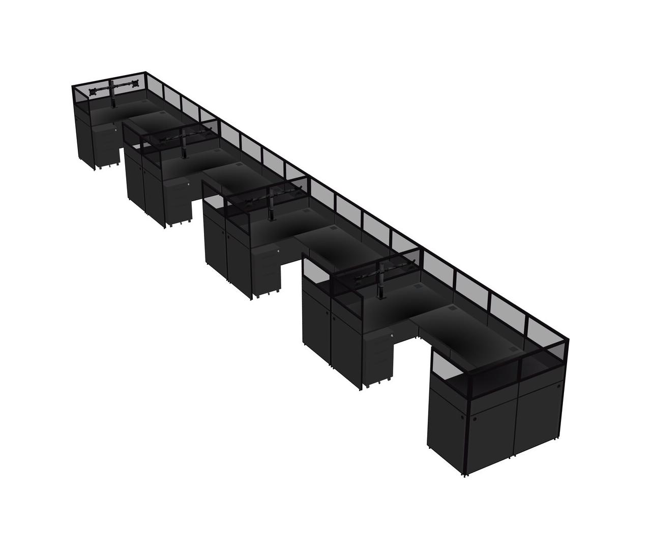 Système De Panneaux En U Noir Pour 4 Personnes + Bras D'écran (bras Doubles) + Tiroirs Mobiles En Métal Pour 4 Utilisateur(s)