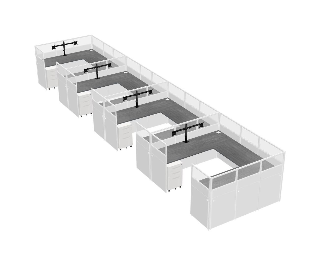 Système De Panneaux En U Gris Pour 4 Personnes + Bras D'écran (bras Doubles) + Tiroirs Mobiles En Métal Pour 4 Utilisateur(s)
