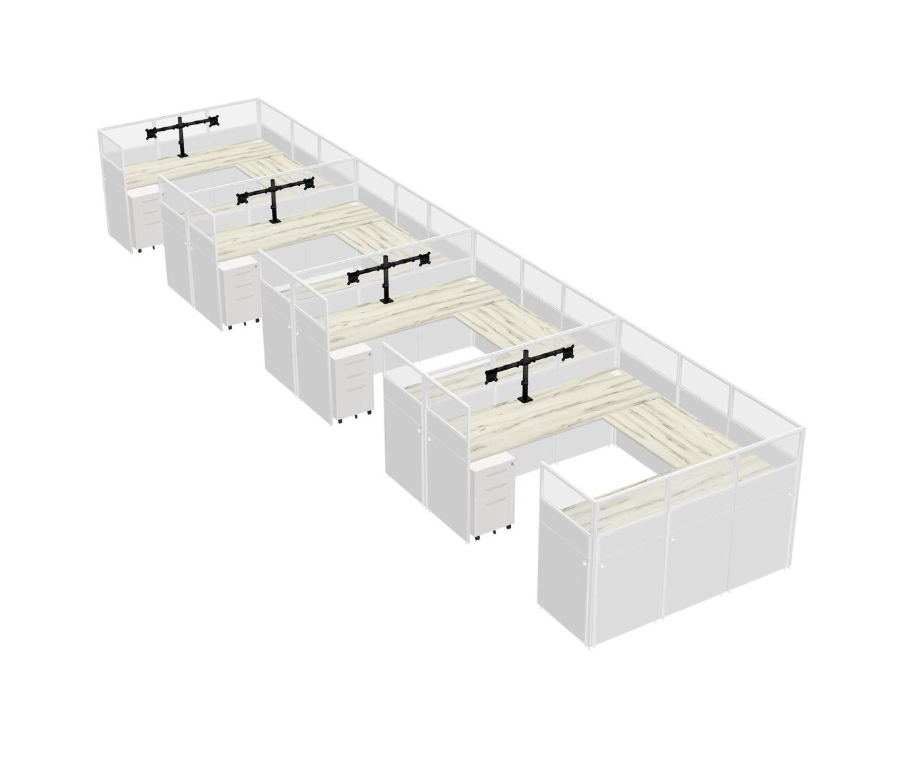 Système De Panneaux En U Heinne Holz Pour 4 Personnes + Bras D'écran (bras Doubles) + Tiroirs Mobiles En Métal Pour 4 Utilisateur(s)