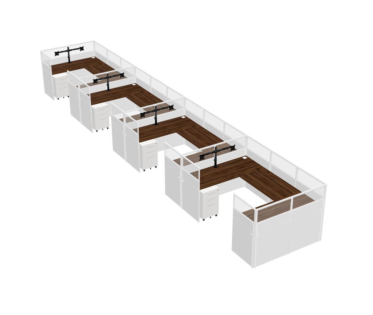 Système De Panneaux En U En Noyer Columbia Pour 4 Personnes + Bras D'écran (bras Doubles) + Tiroirs Mobiles En Métal Pour 4 Utilisateur(s)