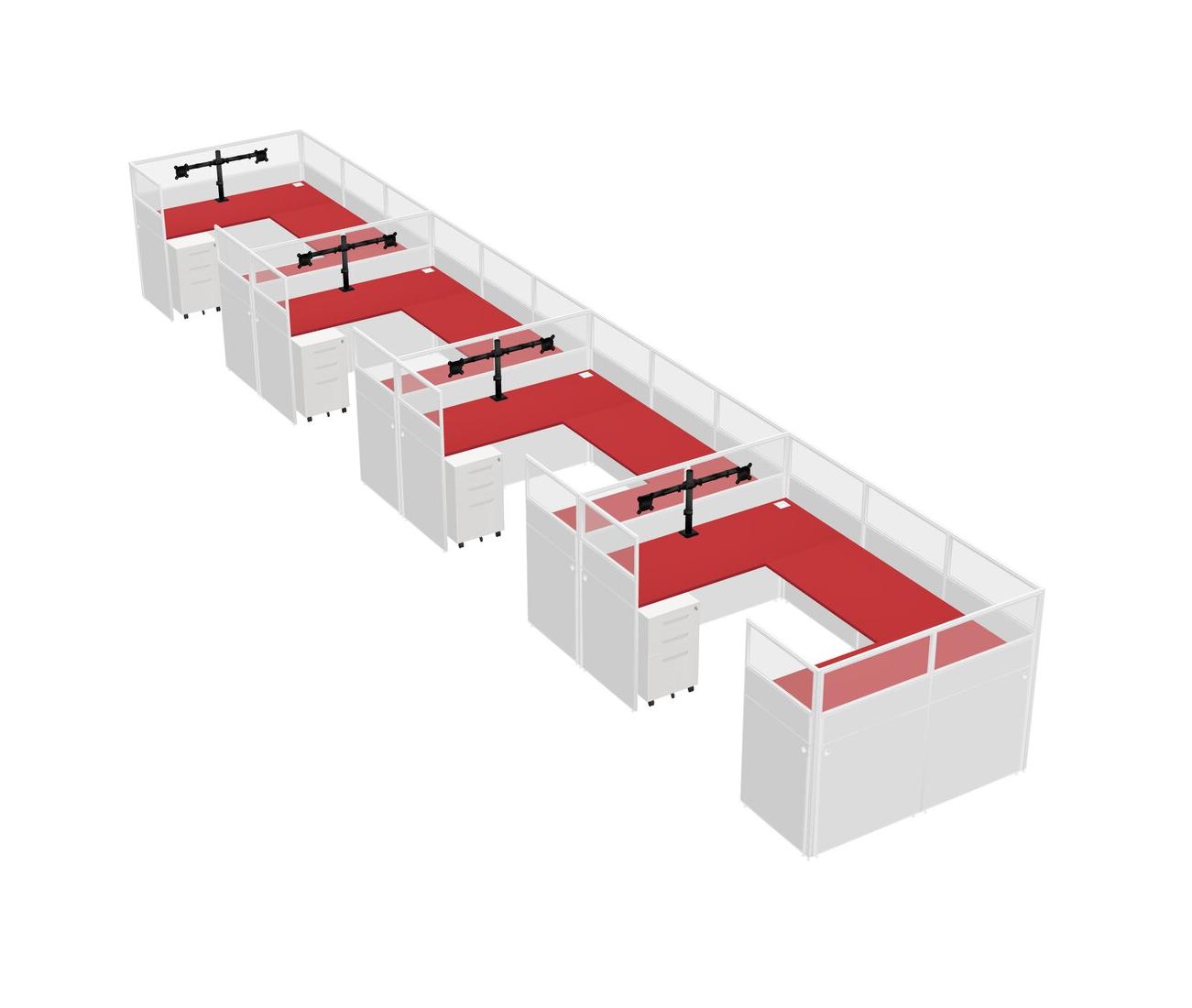 Système De Panneaux En U Prism Red Pour 4 Personnes + Bras D'écran (bras Doubles) + Tiroirs Mobiles En Métal Pour 4 Utilisateur(s)