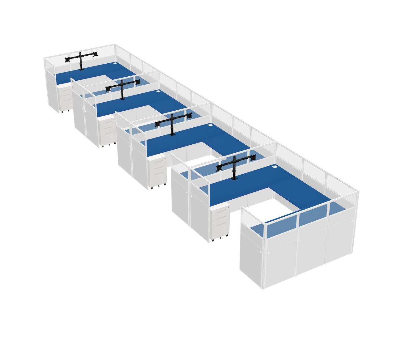 Système De Panneaux En U Prism Blue Pour 4 Personnes + Bras D'écran (bras Doubles) + Tiroirs Mobiles En Métal Pour 4 Utilisateur(s)