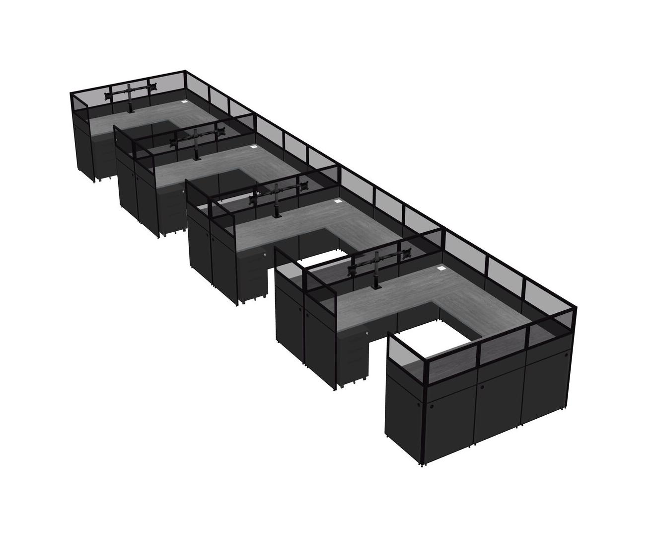 Système De Panneaux En U Gris Pour 4 Personnes + Bras D'écran (bras Doubles) + Tiroirs Mobiles En Métal Pour 4 Utilisateur(s)