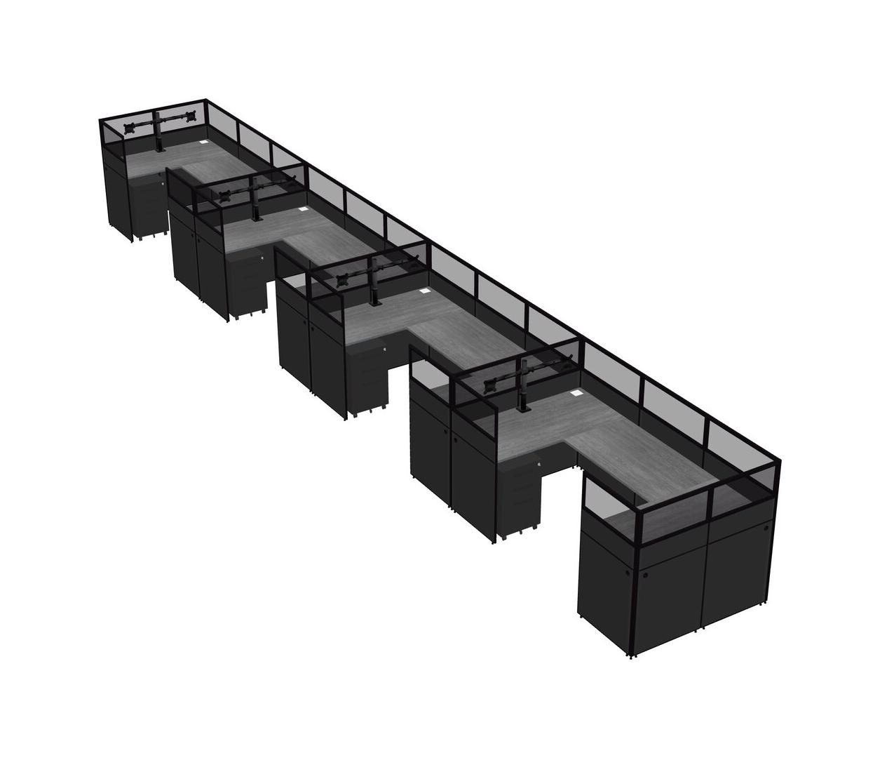 Système De Panneaux En U Gris Pour 4 Personnes + Bras D'écran (bras Doubles) + Tiroirs Mobiles En Métal Pour 4 Utilisateur(s)