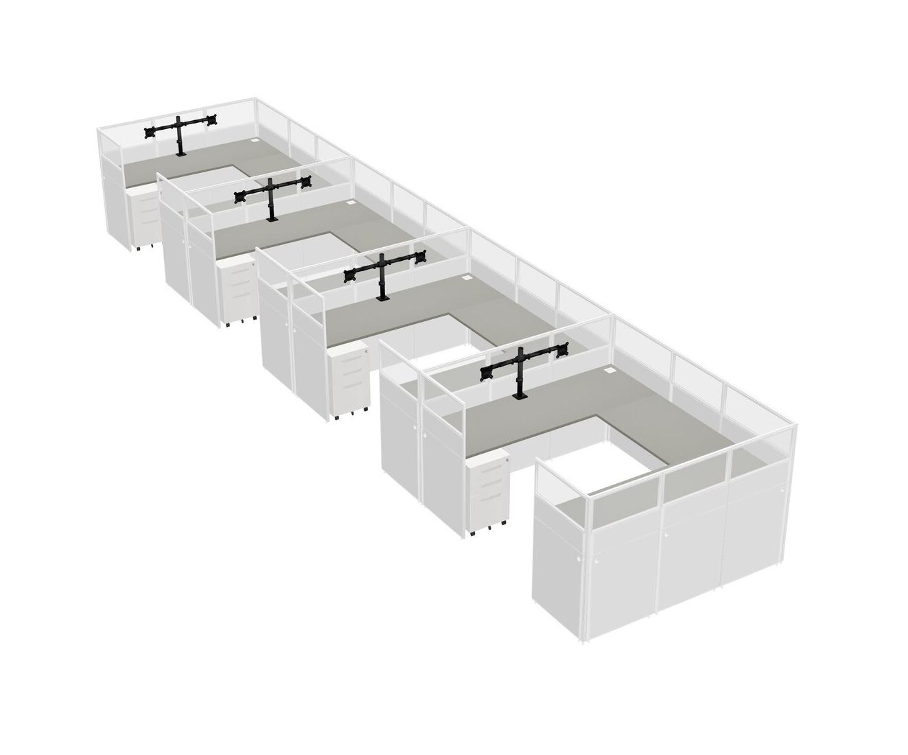 Système De Panneaux En U Grey Shadows Pour 4 Personnes + Bras D'écran (bras Doubles) + Tiroirs Mobiles En Métal Pour 4 Utilisateur(s)