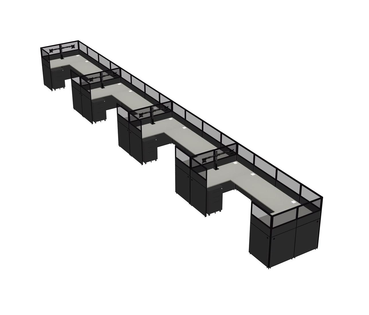 Système De Panneaux En U Grey Shadows Pour 4 Personnes + Bras D'écran (bras Doubles) + Tiroirs Mobiles En Métal Pour 4 Utilisateur(s)