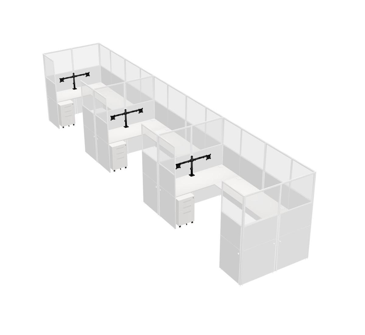 Système De Panneaux Blancs En U Pour 3 Personnes + Bras D'écran (bras Doubles) + Tiroirs Mobiles En Métal Pour 3 Utilisateur(s)