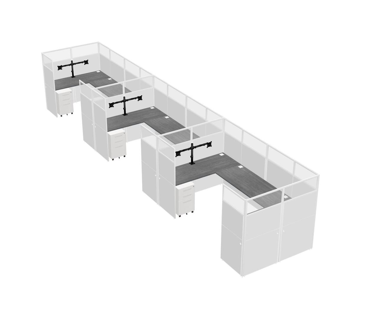 Système De Panneaux En U Gris Pour 3 Personnes + Bras D'écran (bras Doubles) + Tiroirs Mobiles En Métal Pour 3 Utilisateur(s)