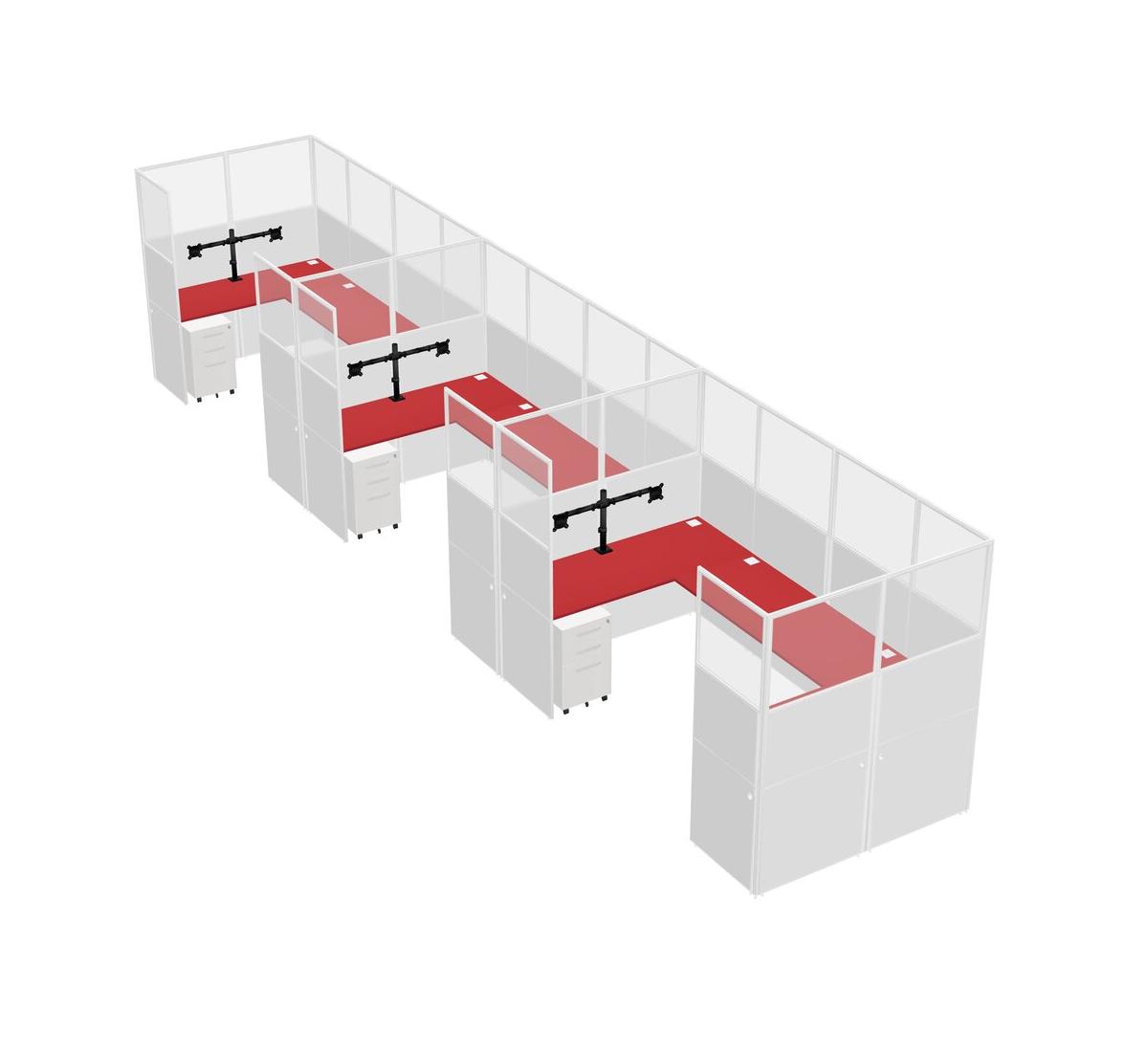 Système De Panneaux En U Prism Red Pour 3 Personnes + Bras D'écran (bras Doubles) + Tiroirs Mobiles En Métal Pour 3 Utilisateur(s)