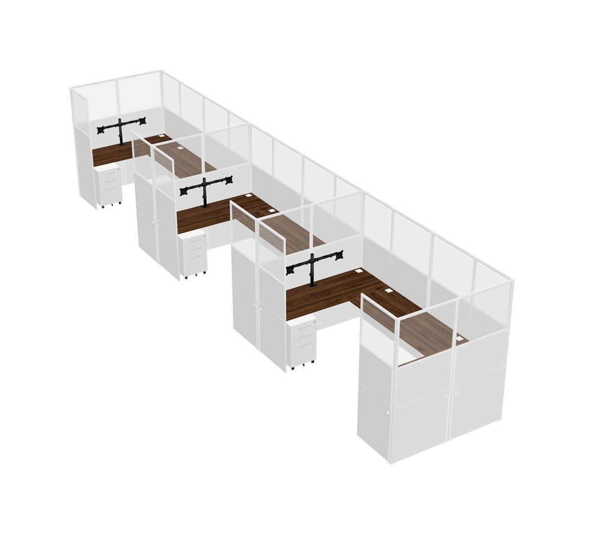 Système De Panneaux En U En Noyer Columbia Pour 3 Personnes + Bras D'écran (bras Doubles) + Tiroirs Mobiles En Métal Pour 3 Utilisateur(s)