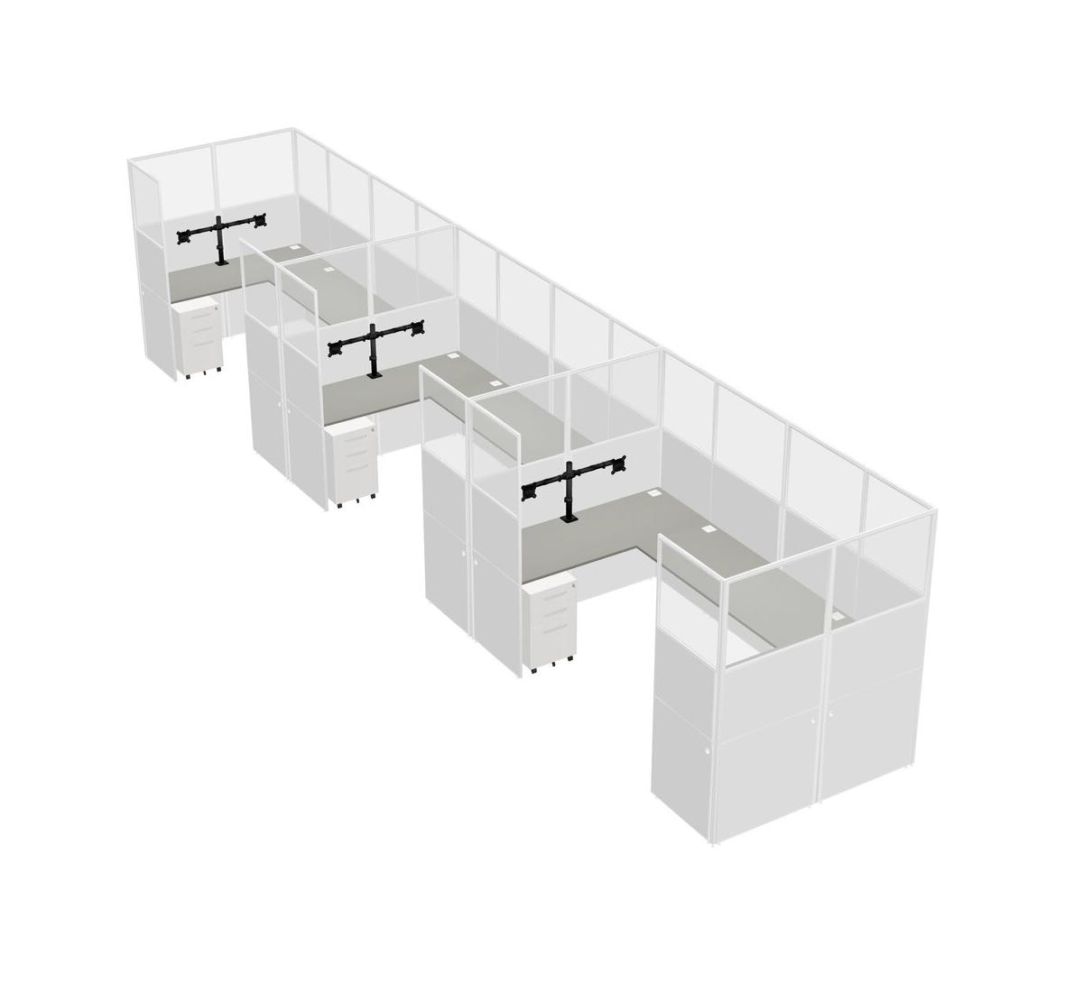 Système De Panneaux En U Grey Shadows Pour 3 Personnes + Bras D'écran (bras Doubles) + Tiroirs Mobiles En Métal Pour 3 Utilisateur(s)