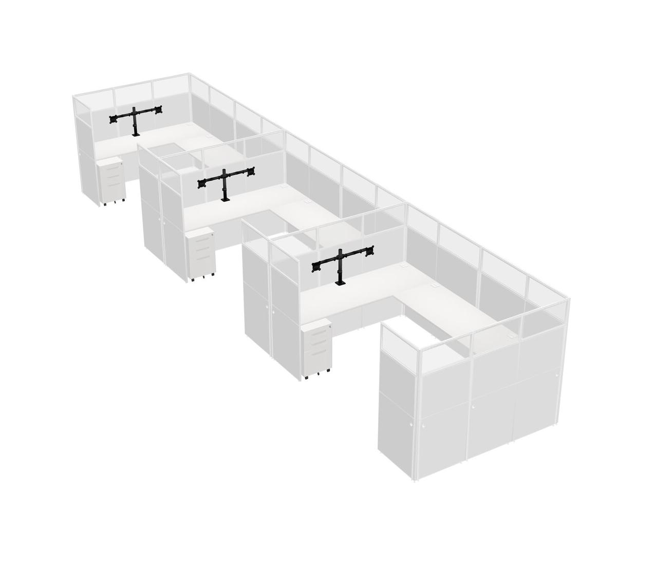 Système De Panneaux Blancs En U Pour 3 Personnes + Bras D'écran (bras Doubles) + Tiroirs Mobiles En Métal Pour 3 Utilisateur(s)