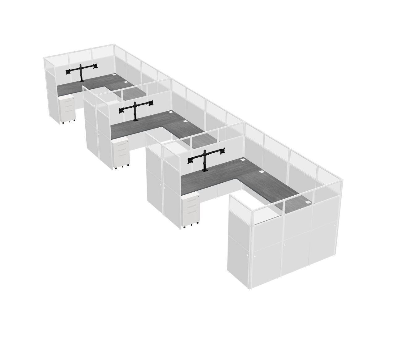 Système De Panneaux En U Gris Pour 3 Personnes + Bras D'écran (bras Doubles) + Tiroirs Mobiles En Métal Pour 3 Utilisateur(s)