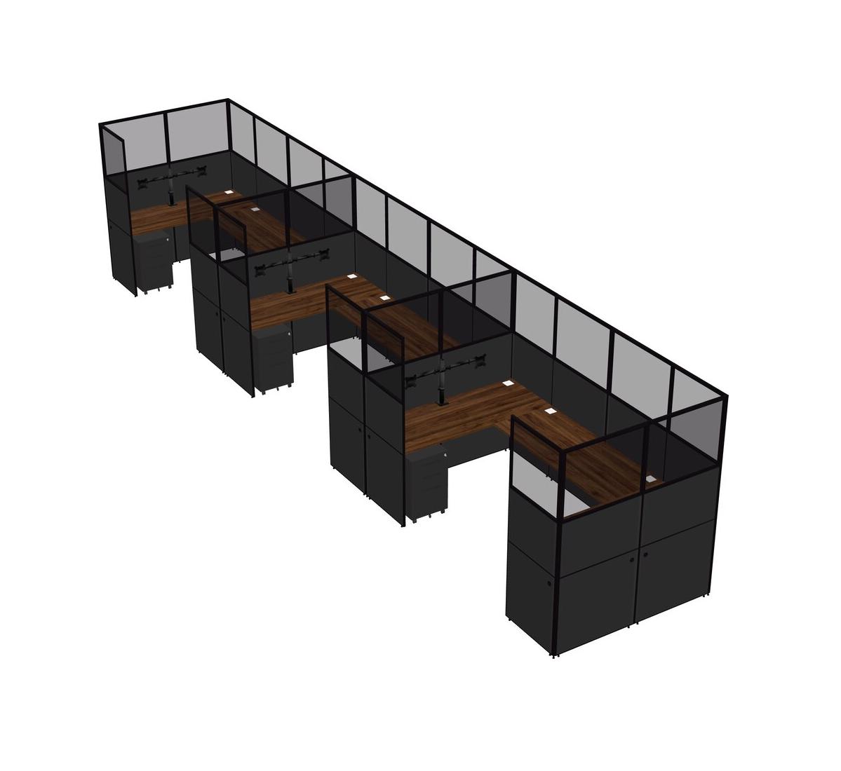 Système De Panneaux En U En Noyer Columbia Pour 3 Personnes + Bras D'écran (bras Doubles) + Tiroirs Mobiles En Métal Pour 3 Utilisateur(s)