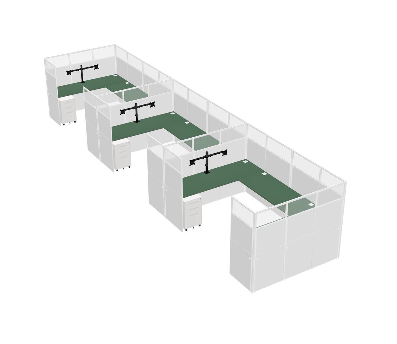 Système De Panneaux En U Vert Pour 3 Personnes + Bras De Moniteur (bras Doubles) + Tiroirs Mobiles En Métal Pour 3 Utilisateur(s)