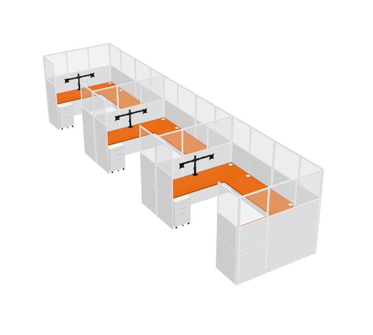 Système De Panneaux En U Orange Pour 3 Personnes + Bras De Moniteur (bras Doubles) + Tiroirs Mobiles En Métal Pour 3 Utilisateur(s)