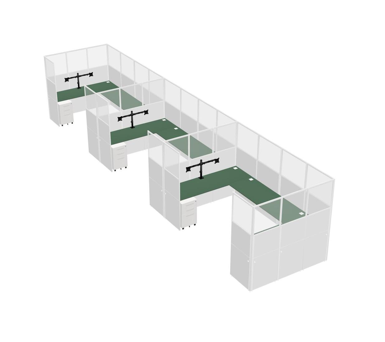 Système De Panneaux En U Vert Pour 3 Personnes + Bras De Moniteur (bras Doubles) + Tiroirs Mobiles En Métal Pour 3 Utilisateur(s)