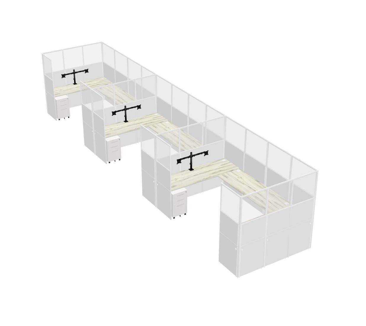 Système De Panneaux En U Heinne Holz Pour 3 Personnes + Bras D'écran (bras Doubles) + Tiroirs Mobiles En Métal Pour 3 Utilisateur(s)