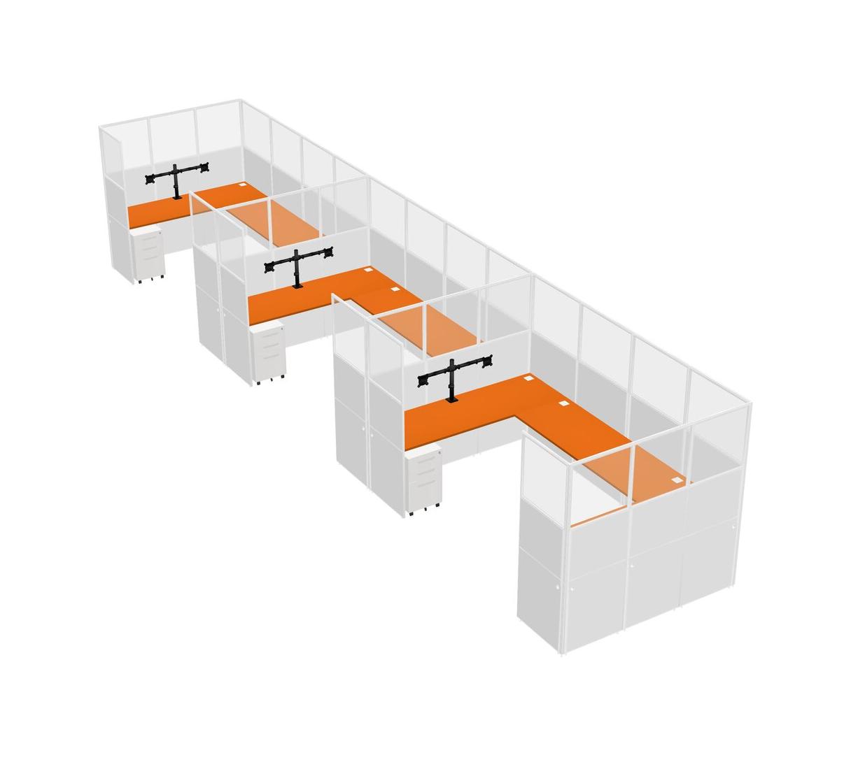 Système De Panneaux En U Orange Pour 3 Personnes + Bras De Moniteur (bras Doubles) + Tiroirs Mobiles En Métal Pour 3 Utilisateur(s)