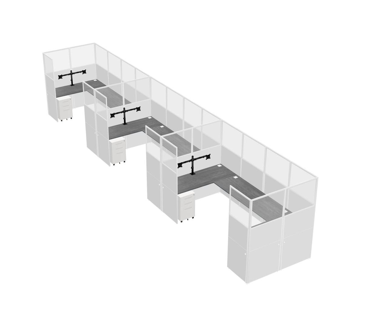 Système De Panneaux En U Gris Pour 3 Personnes + Bras D'écran (bras Doubles) + Tiroirs Mobiles En Métal Pour 3 Utilisateur(s)