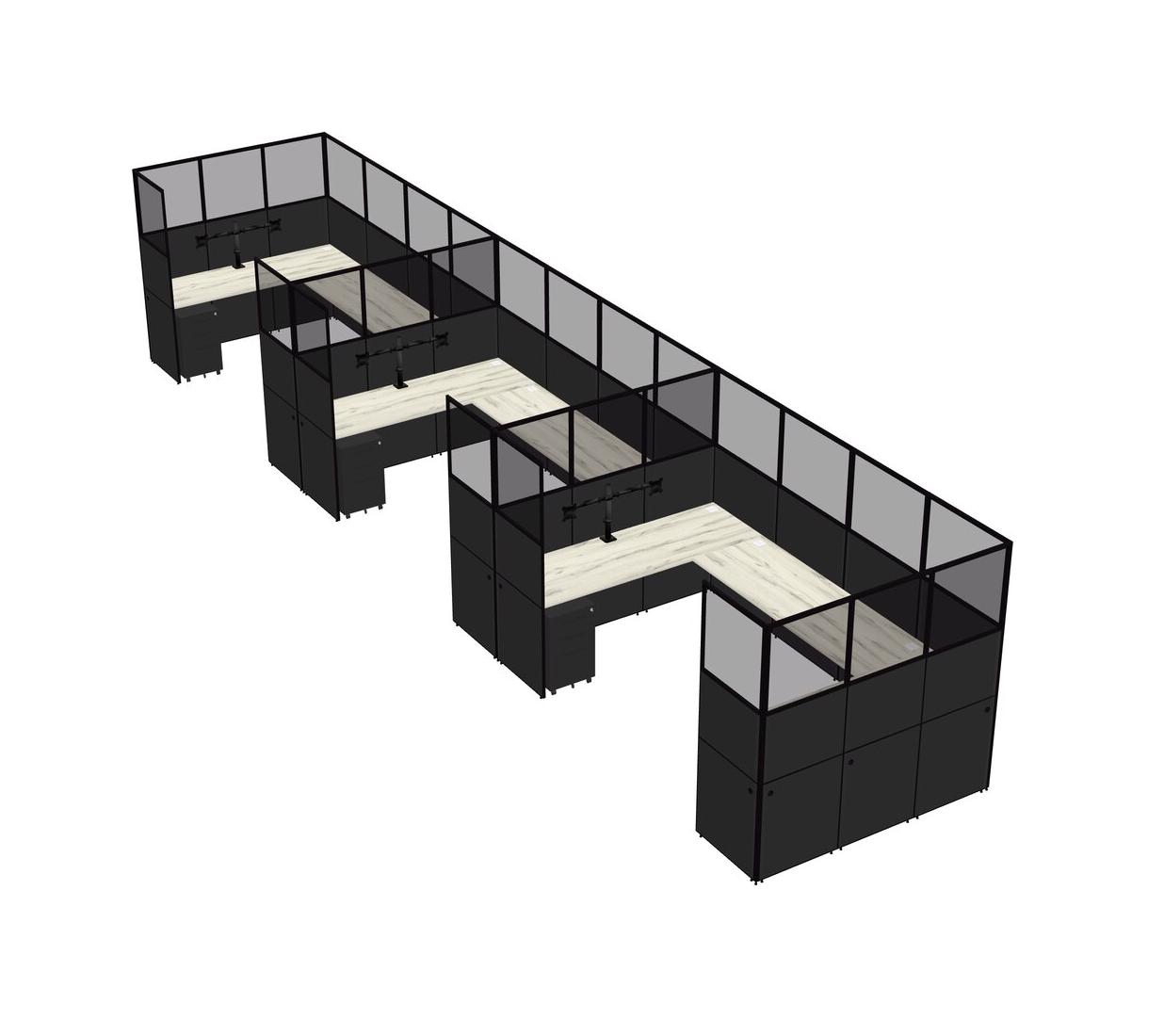 Système De Panneaux En U Heinne Holz Pour 3 Personnes + Bras D'écran (bras Doubles) + Tiroirs Mobiles En Métal Pour 3 Utilisateur(s)