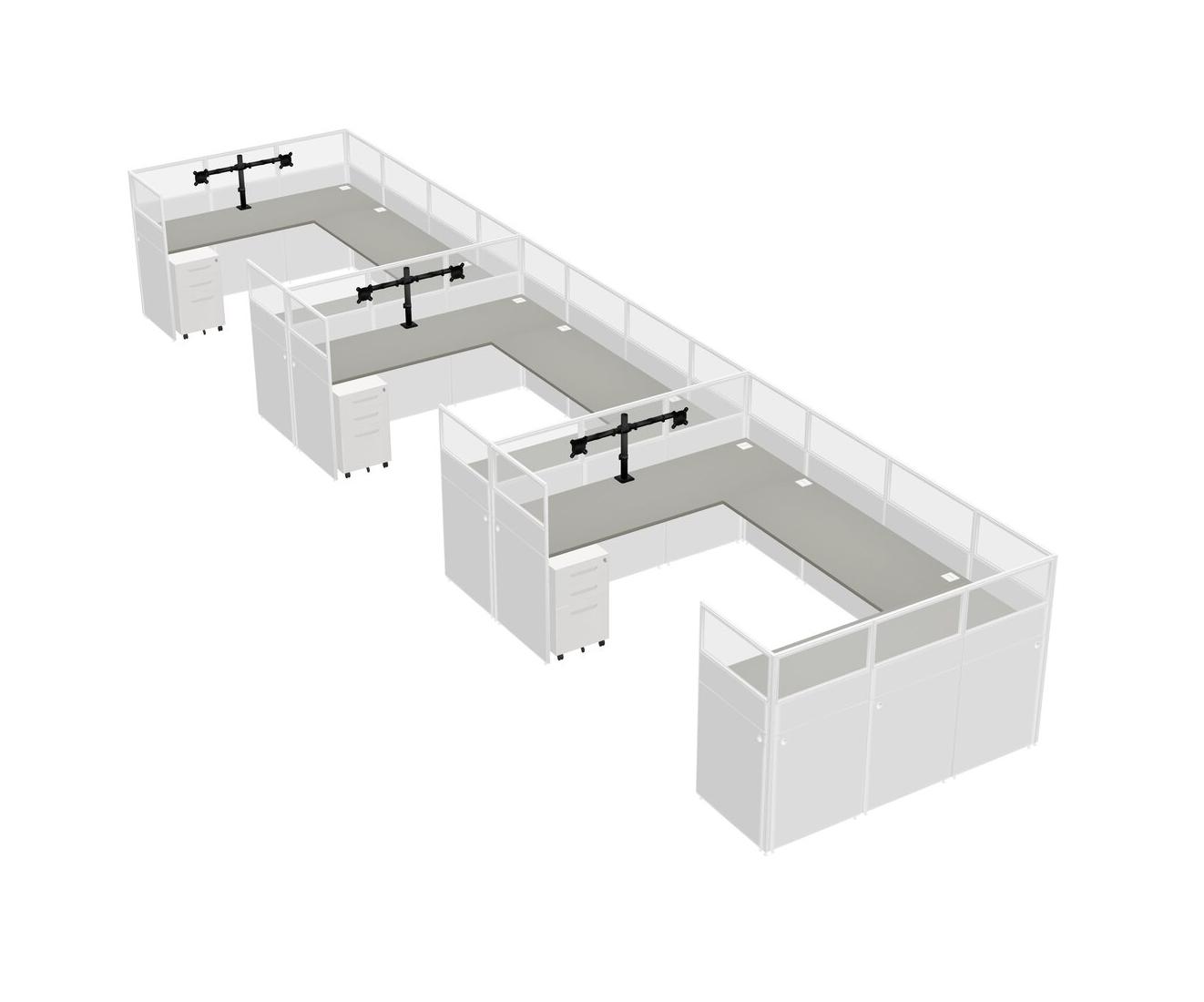 Système De Panneaux En U Grey Shadows Pour 3 Personnes + Bras D'écran (bras Doubles) + Tiroirs Mobiles En Métal Pour 3 Utilisateur(s)