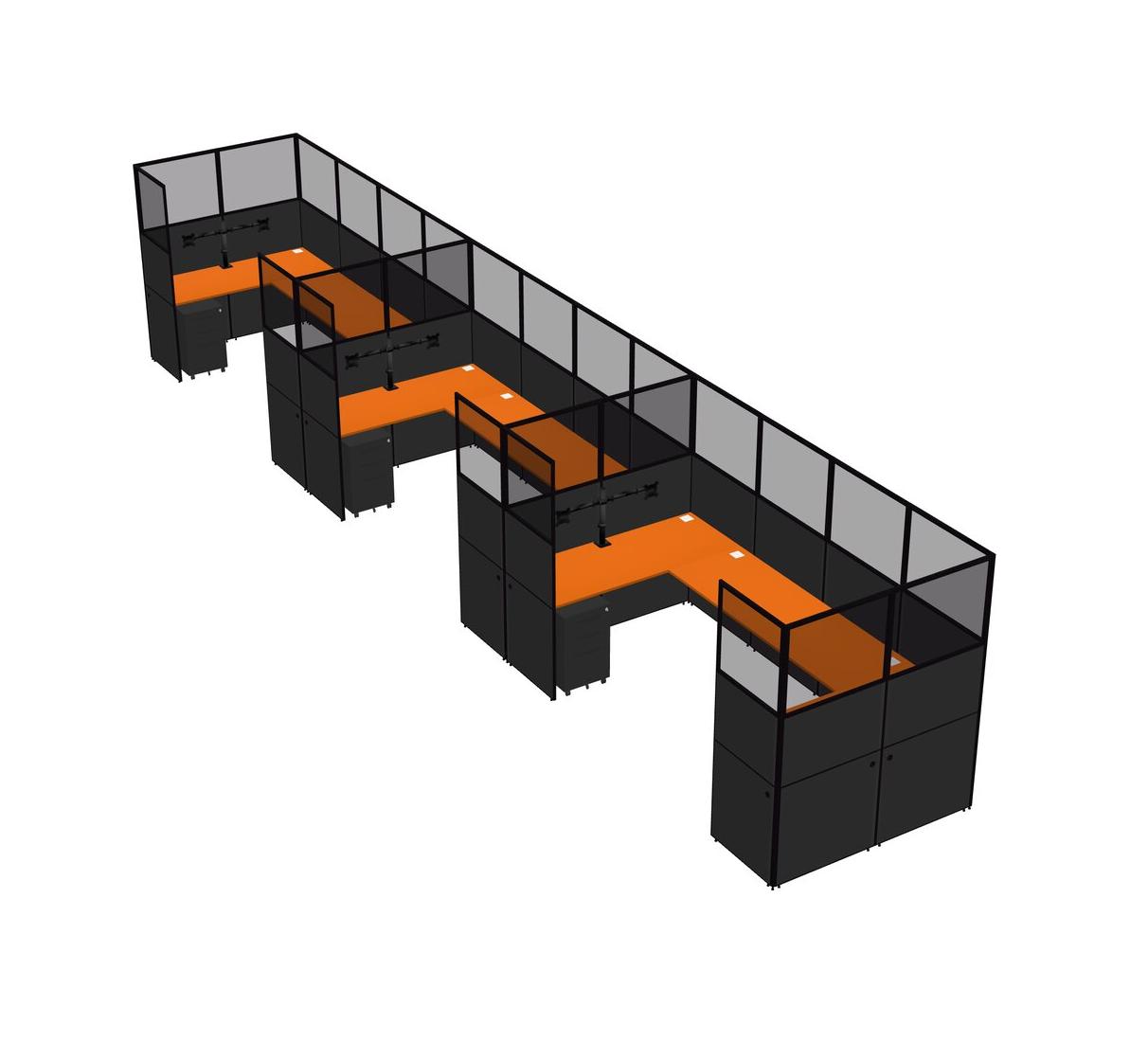 Système De Panneaux En U Orange Pour 3 Personnes + Bras De Moniteur (bras Doubles) + Tiroirs Mobiles En Métal Pour 3 Utilisateur(s)