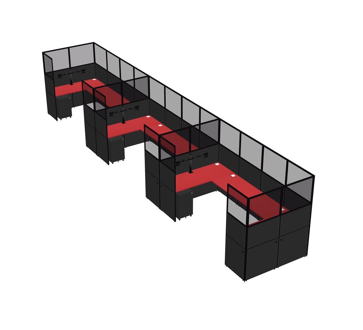 Système De Panneaux En U Prism Red Pour 3 Personnes + Bras D'écran (bras Doubles) + Tiroirs Mobiles En Métal Pour 3 Utilisateur(s)