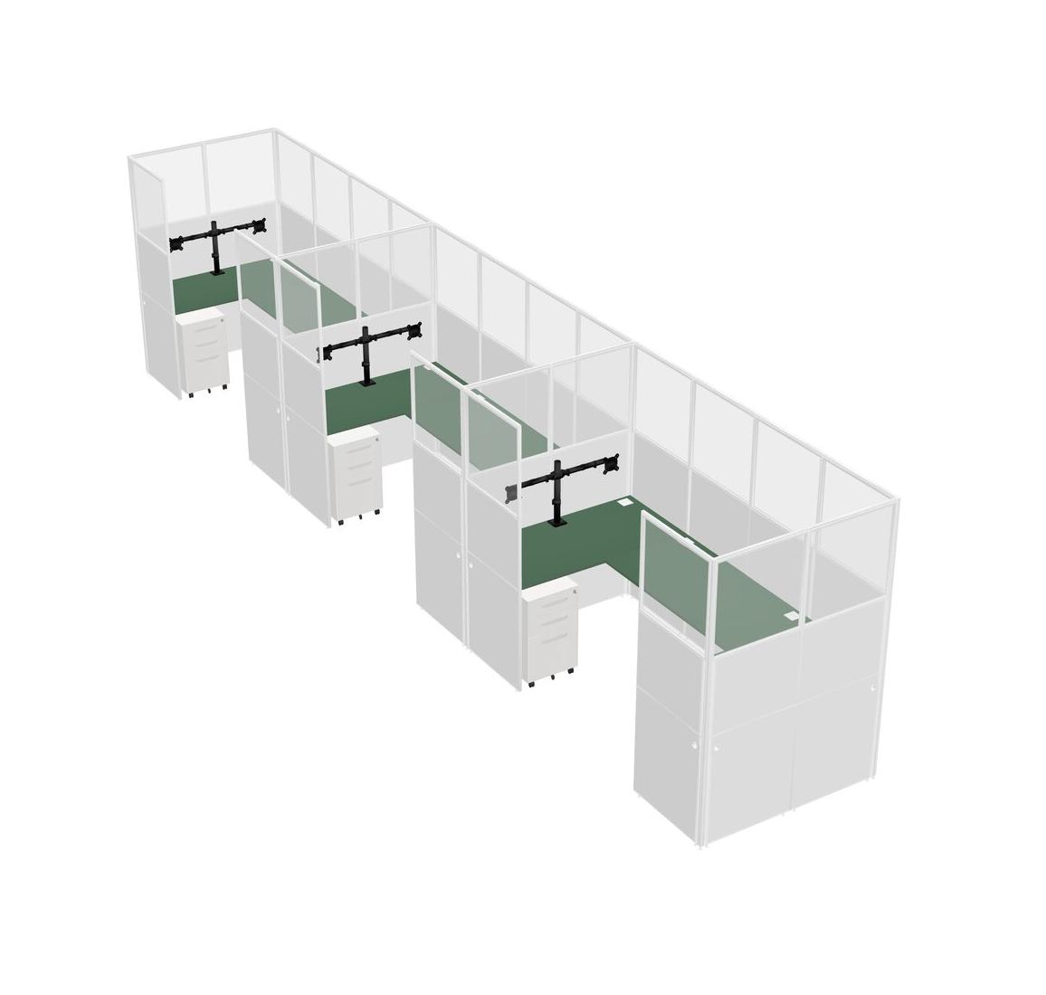 Système De Panneaux En U Vert Pour 3 Personnes + Bras De Moniteur (bras Doubles) + Tiroirs Mobiles En Métal Pour 3 Utilisateur(s)