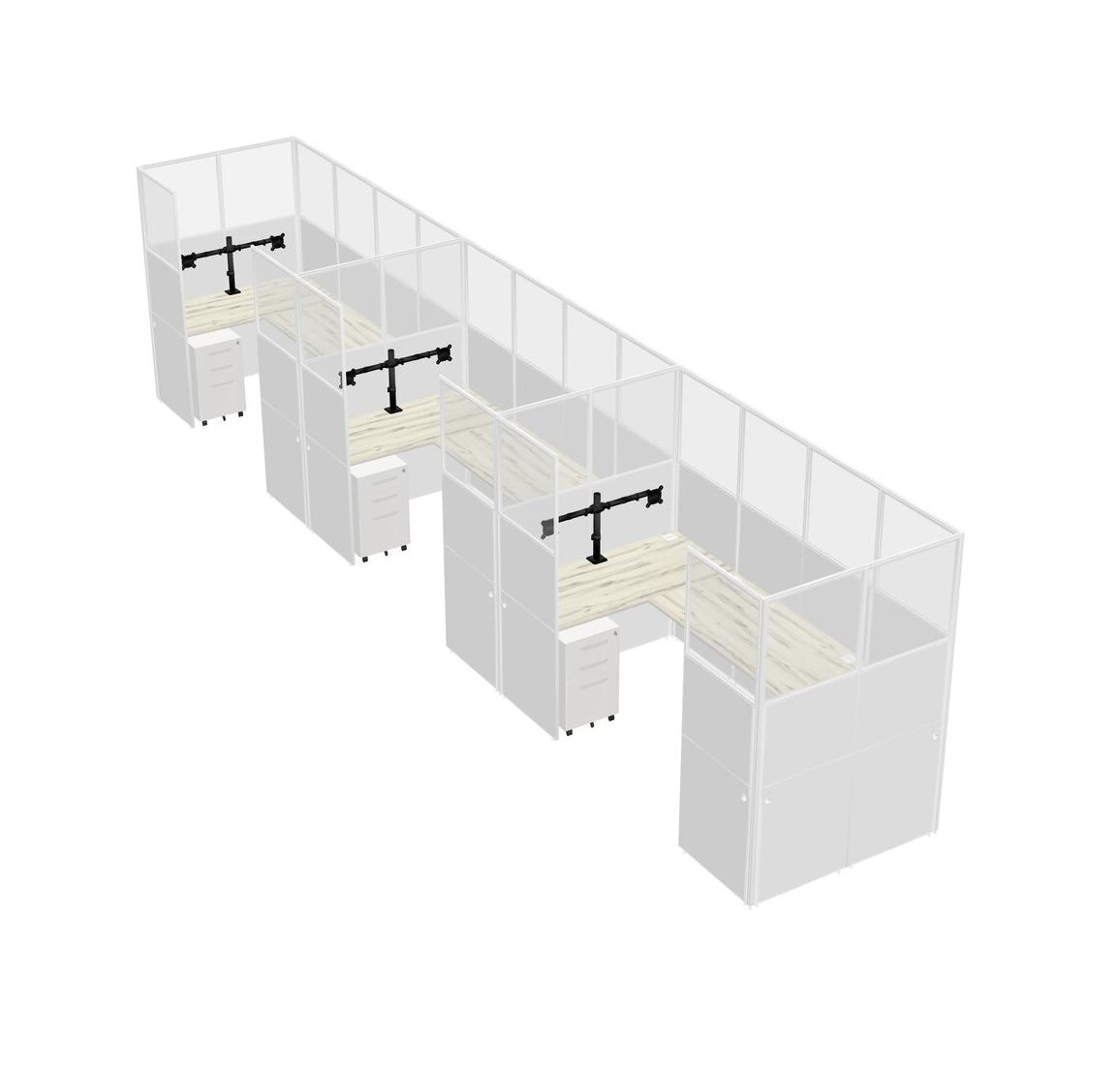 Système De Panneaux En U Heinne Holz Pour 3 Personnes + Bras D'écran (bras Doubles) + Tiroirs Mobiles En Métal Pour 3 Utilisateur(s)