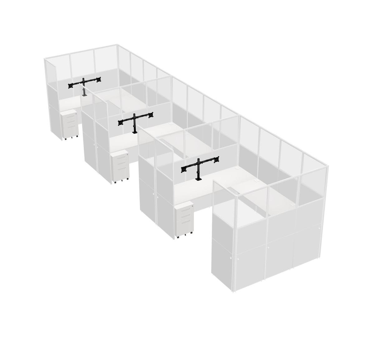 Système De Panneaux Blancs En U Pour 3 Personnes + Bras D'écran (bras Doubles) + Tiroirs Mobiles En Métal Pour 3 Utilisateur(s)