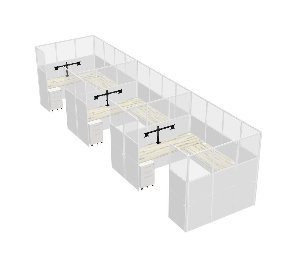 Système De Panneaux En U Heinne Holz Pour 3 Personnes + Bras D'écran (bras Doubles) + Tiroirs Mobiles En Métal Pour 3 Utilisateur(s)