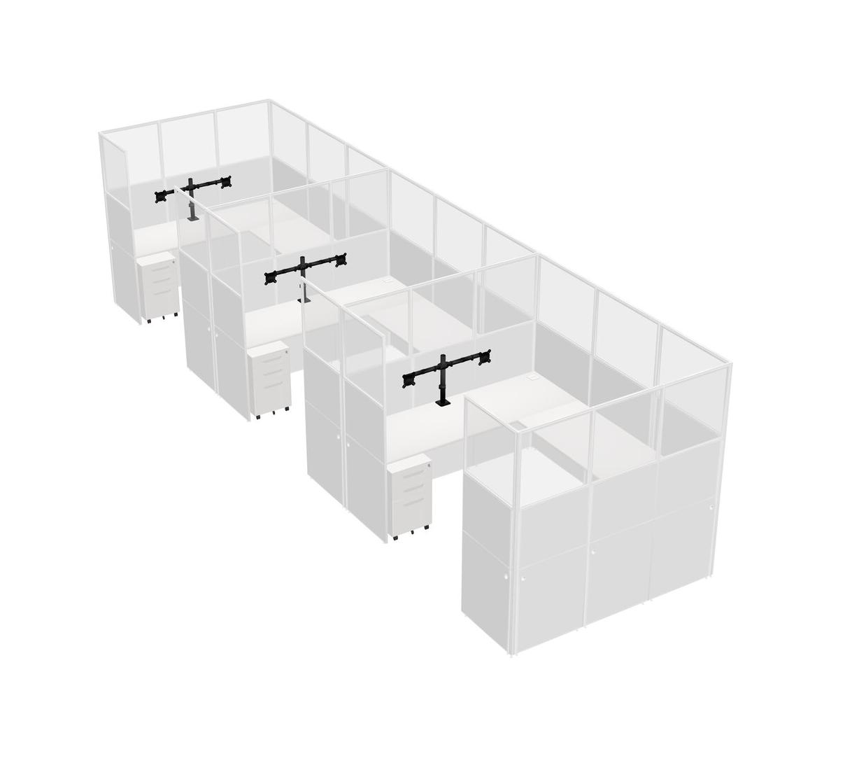 Système De Panneaux Blancs En U Pour 3 Personnes + Bras D'écran (bras Doubles) + Tiroirs Mobiles En Métal Pour 3 Utilisateur(s)