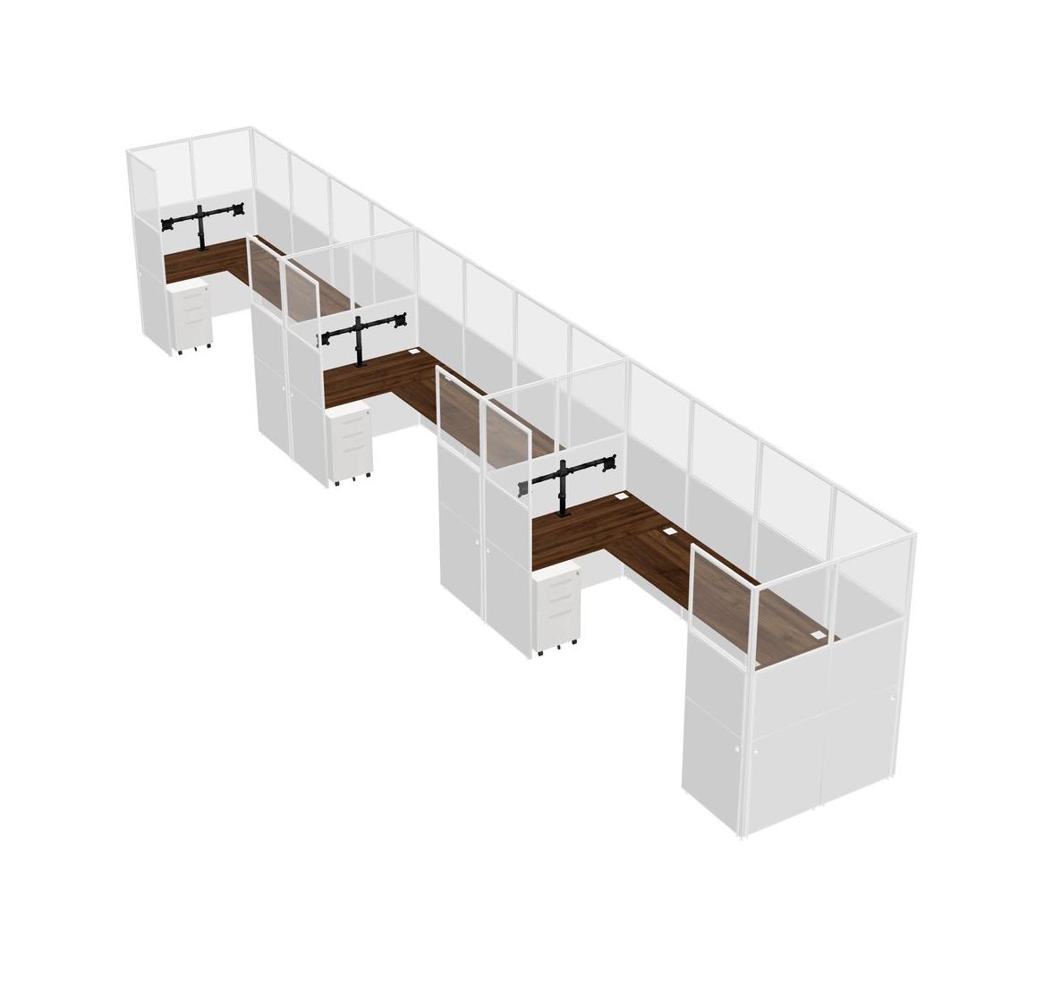 Système De Panneaux En U En Noyer Columbia Pour 3 Personnes + Bras D'écran (bras Doubles) + Tiroirs Mobiles En Métal Pour 3 Utilisateur(s)