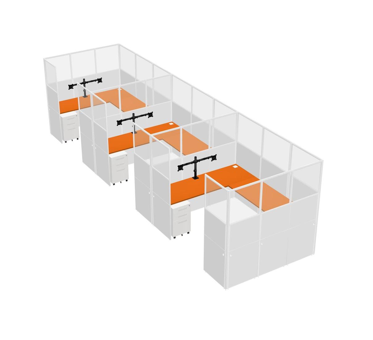 Système De Panneaux En U Orange Pour 3 Personnes + Bras De Moniteur (bras Doubles) + Tiroirs Mobiles En Métal Pour 3 Utilisateur(s)