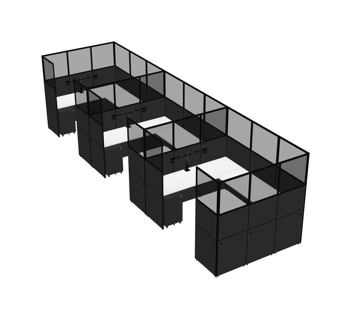 Système De Panneaux Blancs En U Pour 3 Personnes + Bras D'écran (bras Doubles) + Tiroirs Mobiles En Métal Pour 3 Utilisateur(s)