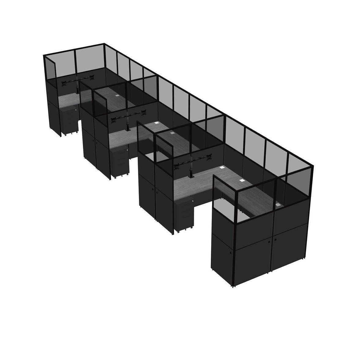 Système De Panneaux En U Gris Pour 3 Personnes + Bras D'écran (bras Doubles) + Tiroirs Mobiles En Métal Pour 3 Utilisateur(s)