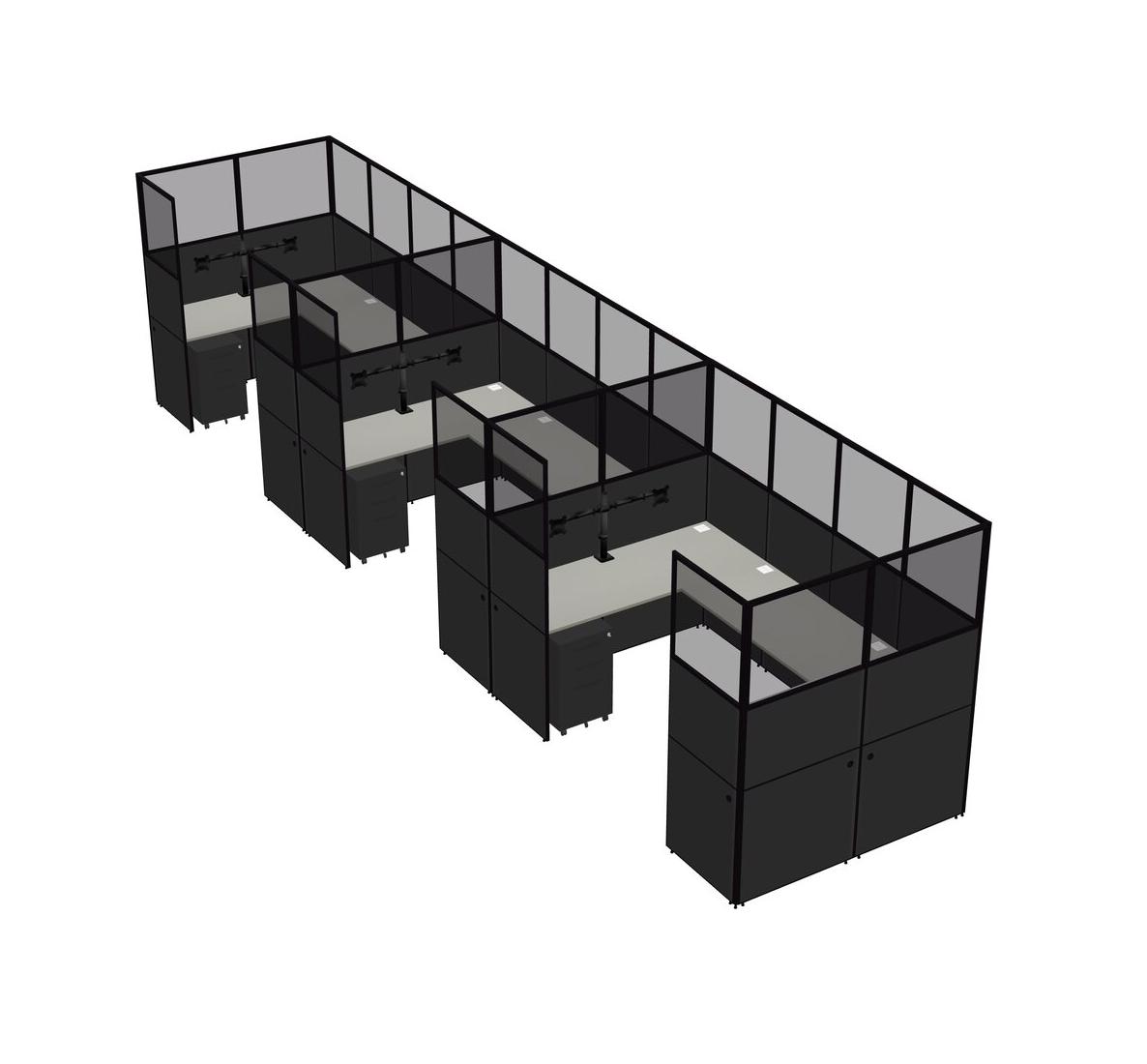 Système De Panneaux En U Grey Shadows Pour 3 Personnes + Bras D'écran (bras Doubles) + Tiroirs Mobiles En Métal Pour 3 Utilisateur(s)