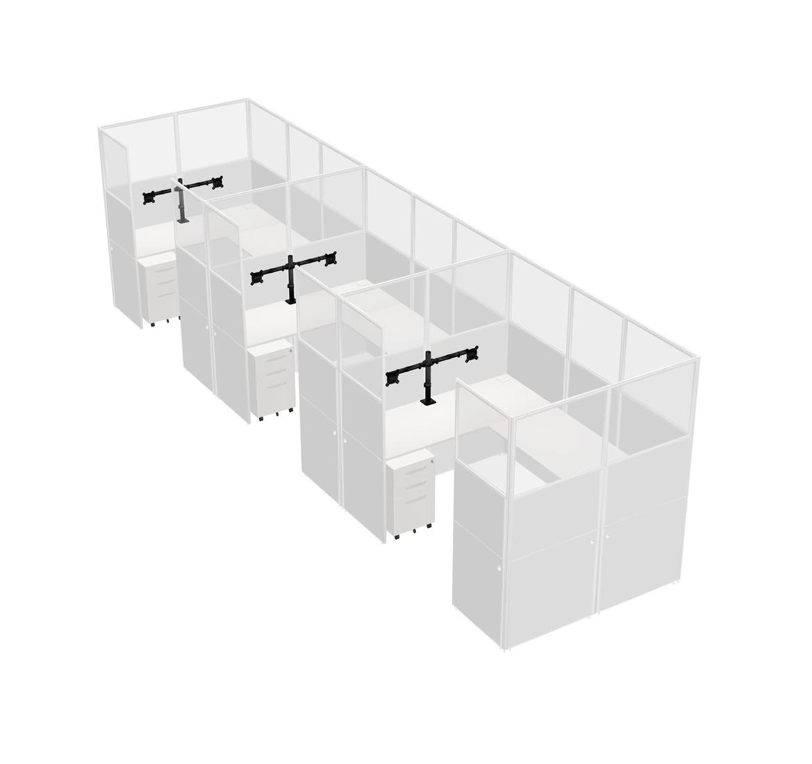 Système De Panneaux Blancs En U Pour 3 Personnes + Bras D'écran (bras Doubles) + Tiroirs Mobiles En Métal Pour 3 Utilisateur(s)