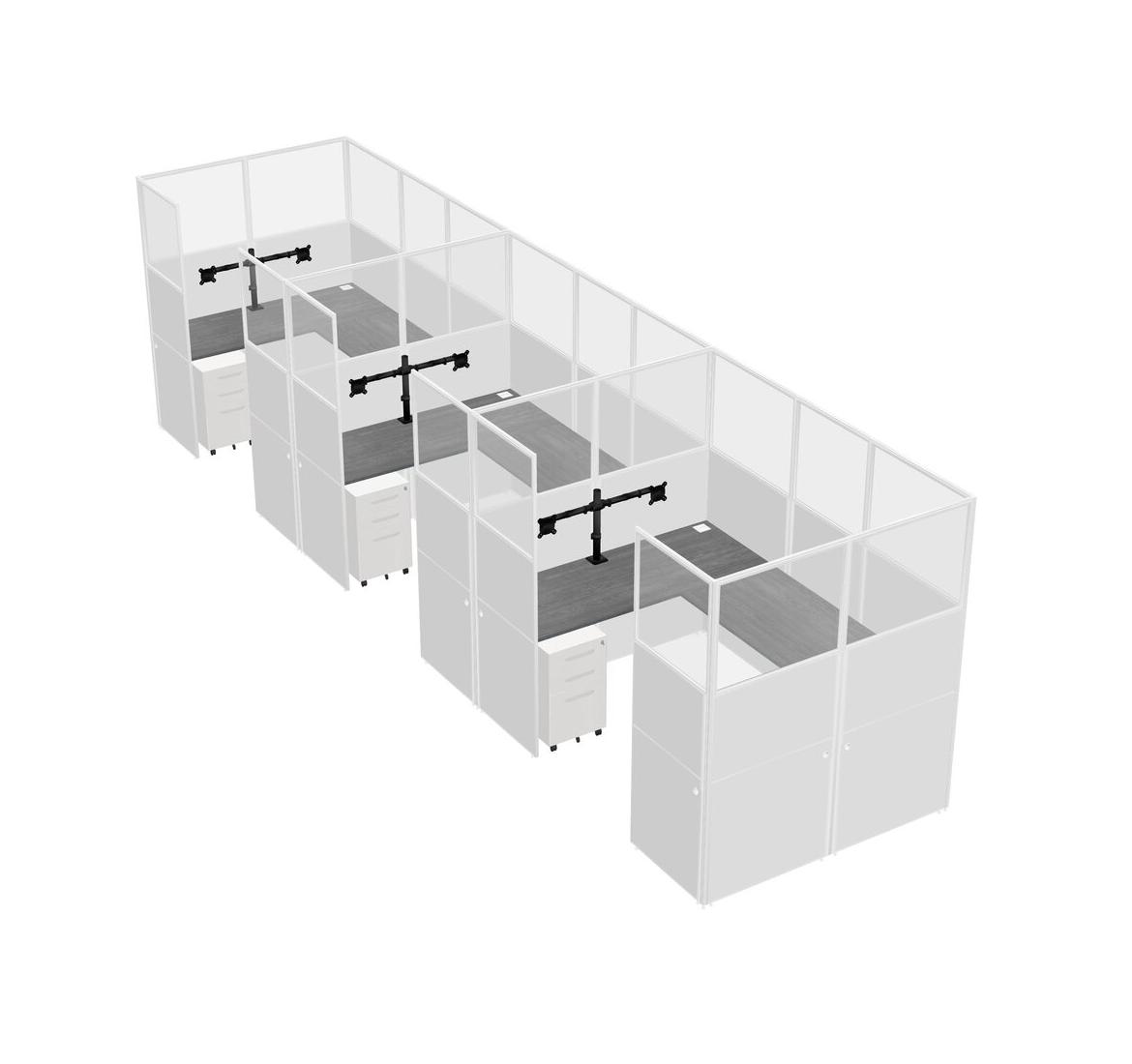 Système De Panneaux En U Gris Pour 3 Personnes + Bras D'écran (bras Doubles) + Tiroirs Mobiles En Métal Pour 3 Utilisateur(s)