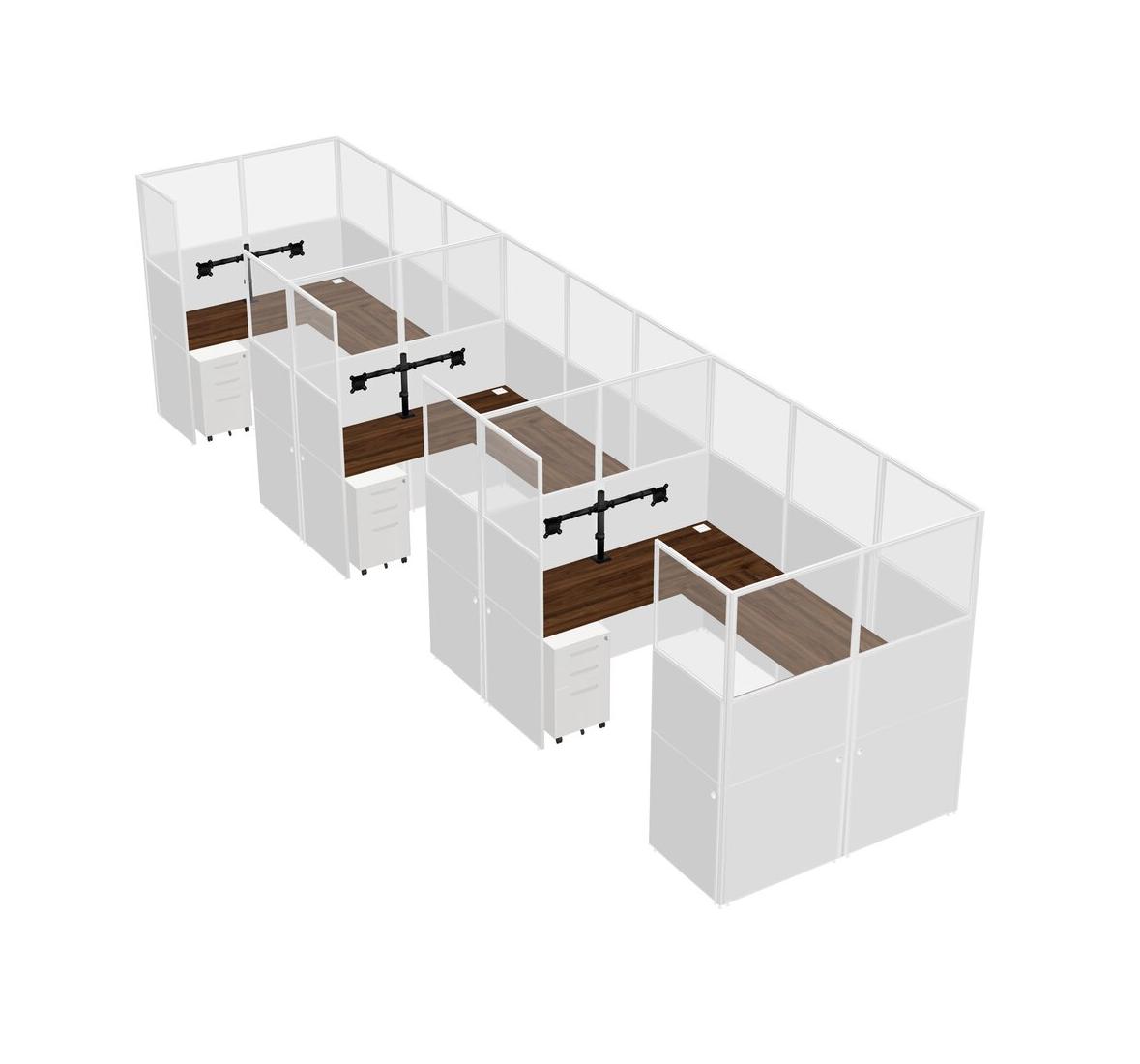 Système De Panneaux En U En Noyer Columbia Pour 3 Personnes + Bras D'écran (bras Doubles) + Tiroirs Mobiles En Métal Pour 3 Utilisateur(s)