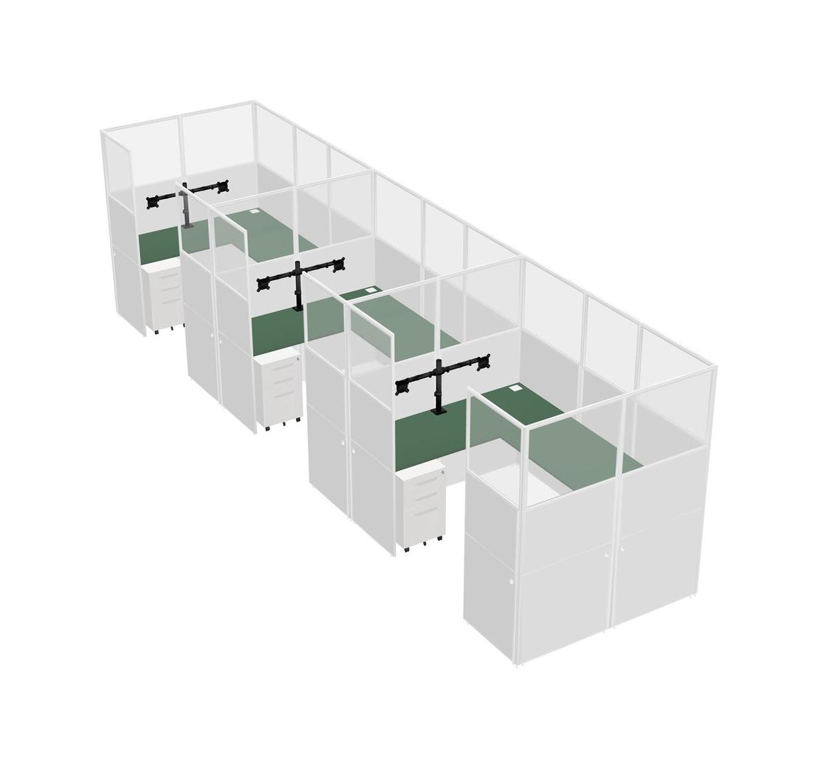 Système De Panneaux En U Vert Pour 3 Personnes + Bras De Moniteur (bras Doubles) + Tiroirs Mobiles En Métal Pour 3 Utilisateur(s)