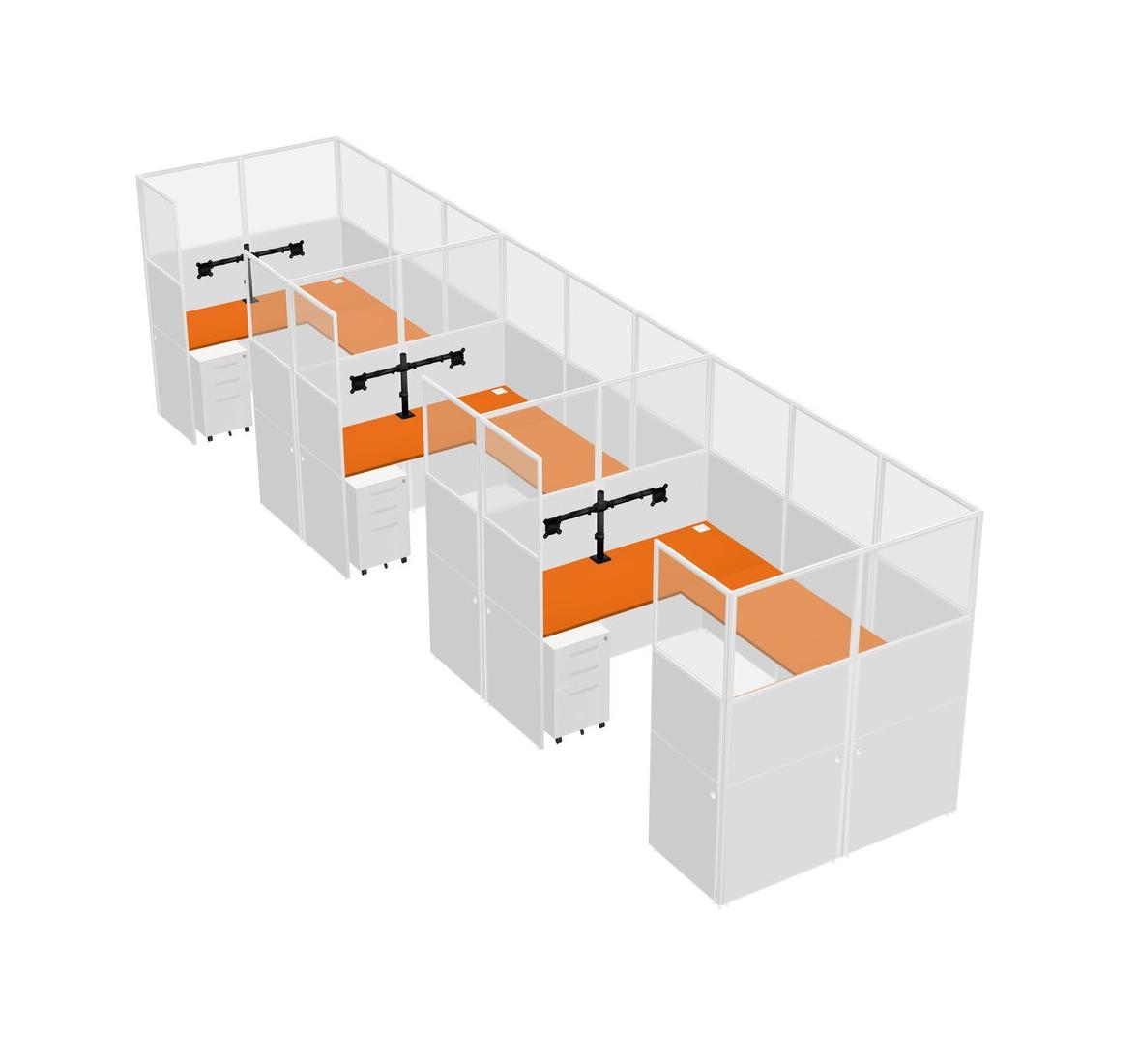 Système De Panneaux En U Orange Pour 3 Personnes + Bras De Moniteur (bras Doubles) + Tiroirs Mobiles En Métal Pour 3 Utilisateur(s)
