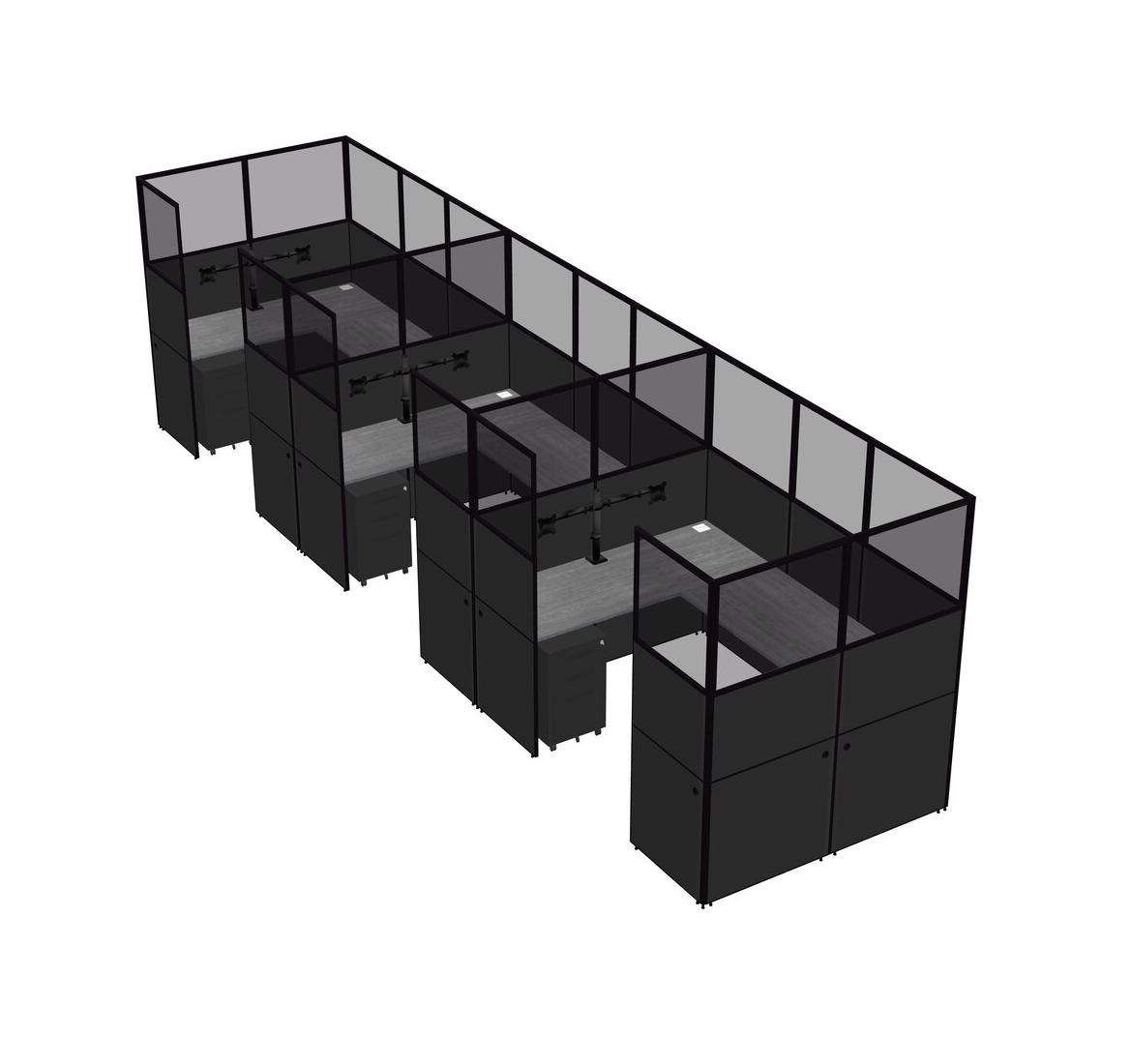 Système De Panneaux En U Gris Pour 3 Personnes + Bras D'écran (bras Doubles) + Tiroirs Mobiles En Métal Pour 3 Utilisateur(s)