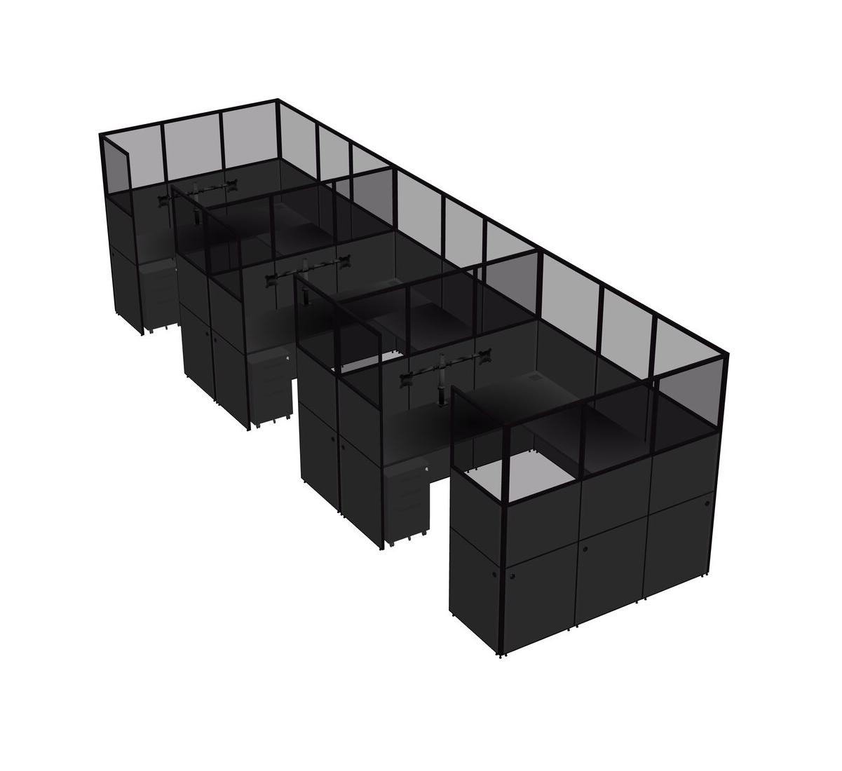 Système De Panneaux En U Noir Pour 3 Personnes + Bras D'écran (bras Doubles) + Tiroirs Mobiles En Métal Pour 3 Utilisateur(s)