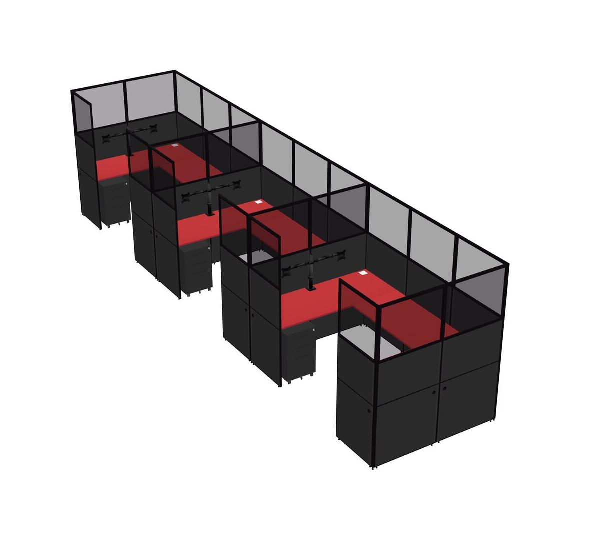 Système De Panneaux En U Prism Red Pour 3 Personnes + Bras D'écran (bras Doubles) + Tiroirs Mobiles En Métal Pour 3 Utilisateur(s)